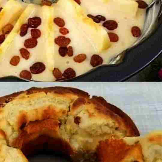 2. **Prepare Apples and Raisins**: Peel, core, and slice the apples. Sprinkle the apple slices and raisins evenly in the greased bundt pan.