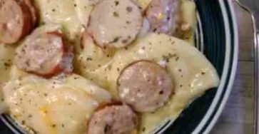 Crockpot Pierogi Casserole with Kielbasa