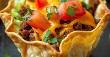Ingredients: 1 lb ground beef1 packet of taco seasoning12 small flour tortillas or wonton wrappers1 cup shredded cheese (cheddar or…