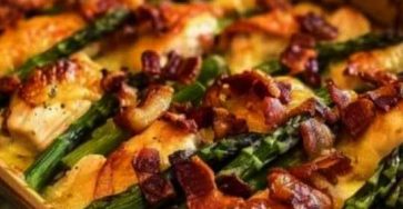 Ingredients: 1 pound of fresh asparagus, peeled and sliced into 1-inch pieces; 6 chopped slices of bacon; 3 cups of…
