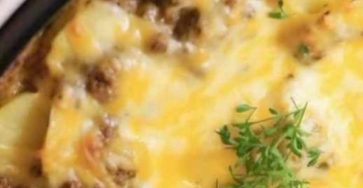 Ingredients: 2 lbs ground beef 1 cup sliced onion 3 lbs russet potatoes, peeled and sliced 1 tsp paprika 1/2…