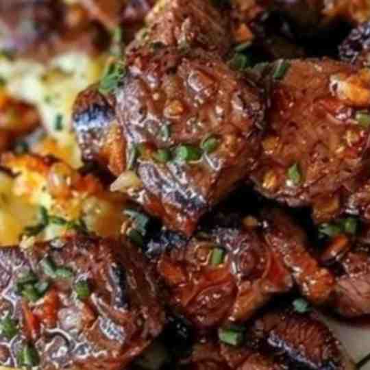 - Plate the Dish: Serve the steak bites over the mashed potatoes. Drizzle any remaining garlic butter sauce from the skillet over the top.