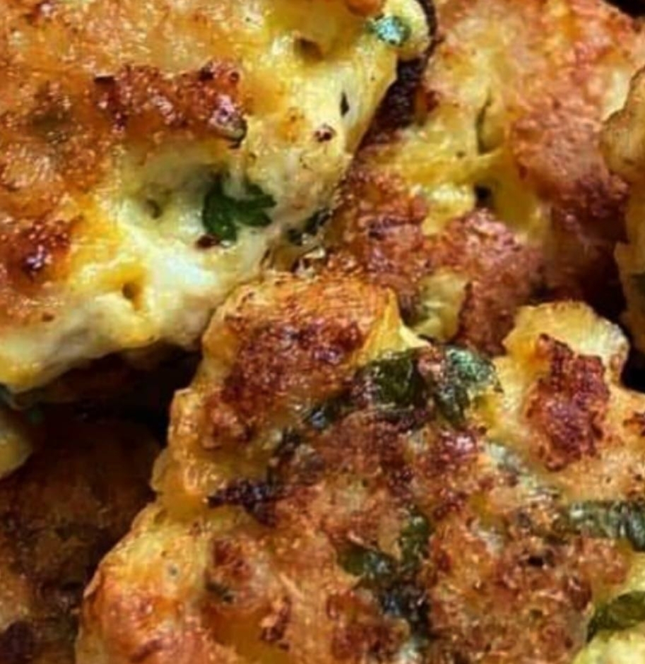 *To test for doneness, cut a fritter in half and the chicken should be completely white inside. If your chicken patty is browning too fast, adjust your heat down.