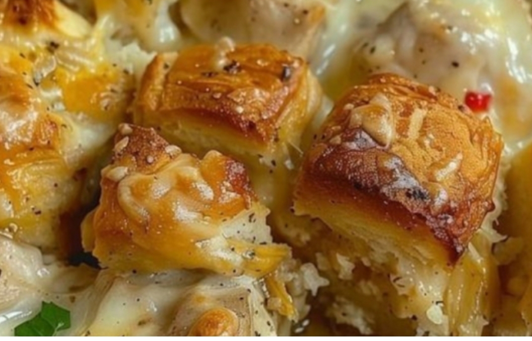 Imagine cloud-soft biscuits bursting through golden chicken silk, cradling bacon confetti—the kind that makes your spoon pause mid-scoop while you whisper, “Mama Elara, you witch of the hollow.” My Mama Elara baked this in her 1932 Ozark cabin after the bank took our land, using up Depression-era biscuit scraps to feed hungry moonshiners. For 92 years, it’s been the star of every harvest moon, snowed-in Sunday, and “the world’s on fire but this pan is perfect” moment. When you tear through that crust, you’re not just eating dinner—you’re tasting the grit of a woman who fed 12 children on a sharecropper’s wage.