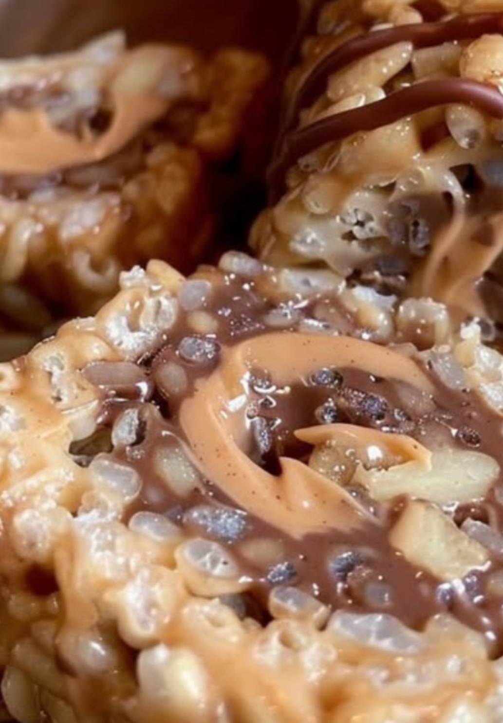 Here is the full recipe for the delicious caramel-chocolate rice crispy roll shown in your picture — super easy, no-bake, and perfect for quick treats!
