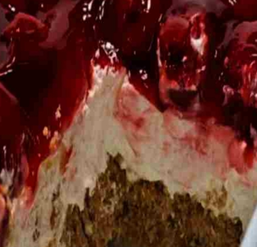 Spreading filling equally over the graham cracker crust use a spoon or offset spatula. Pour the cherry pie filling over the top and gently spread it evenly over the filling.
