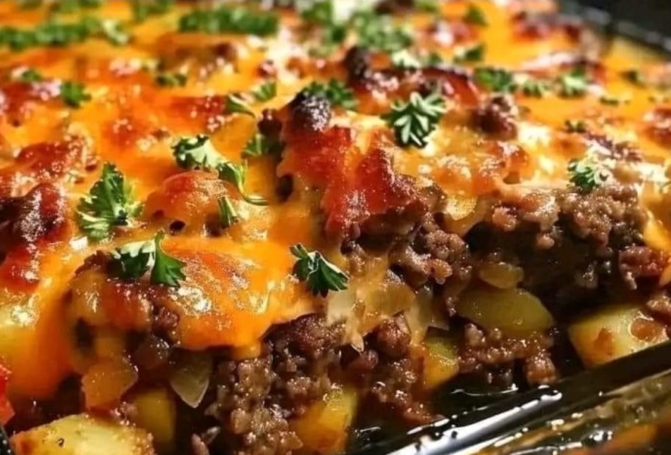 Add cheese: Sprinkle the cheddar cheese over the meat and potatoes. Bake, uncovered, for another 15 minutes or until the cheese is melted and the meat is nicely browned.