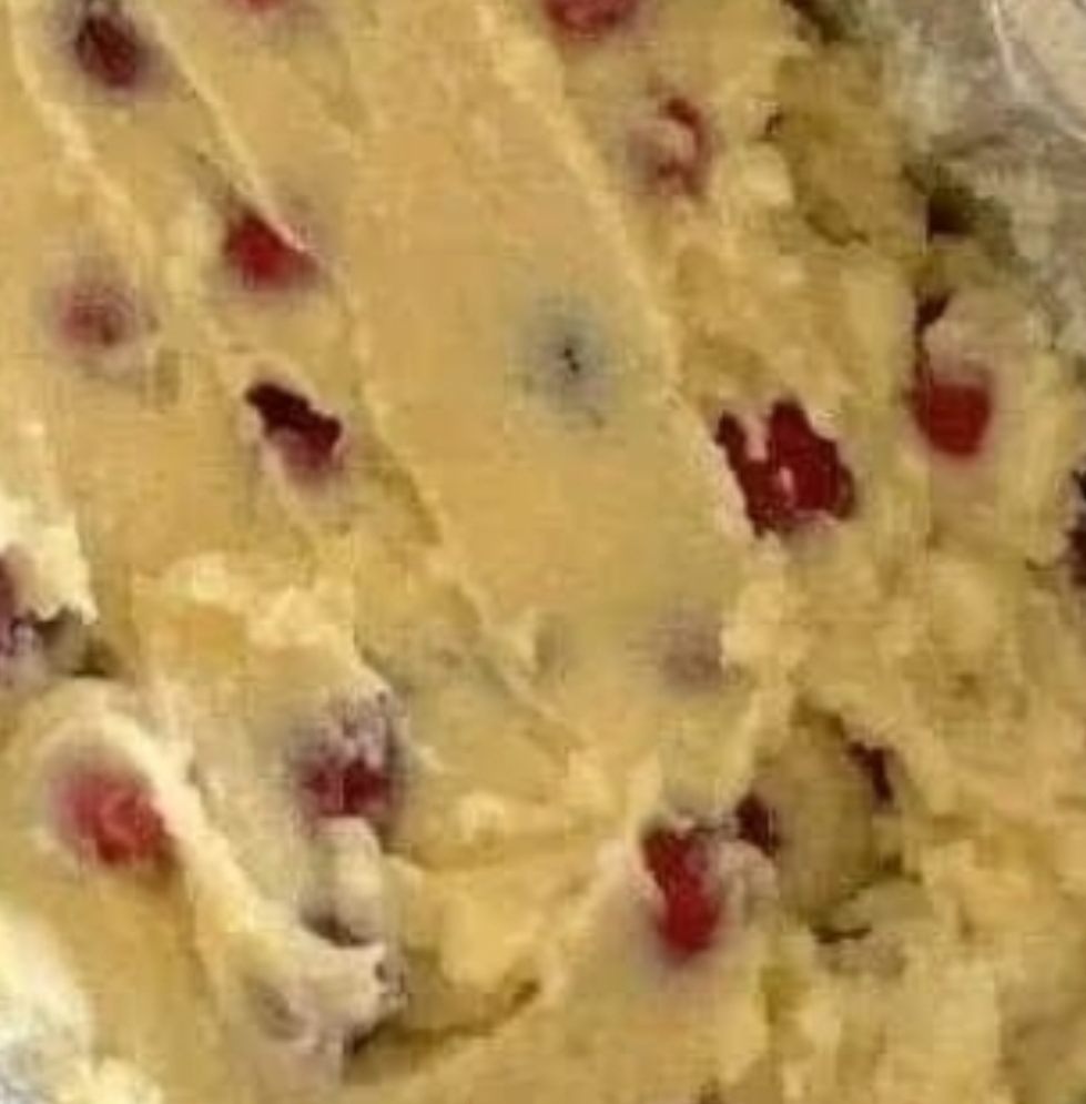 6. Fold in the cranberries. If using frozen cranberries, do not thaw—this prevents color bleeding.