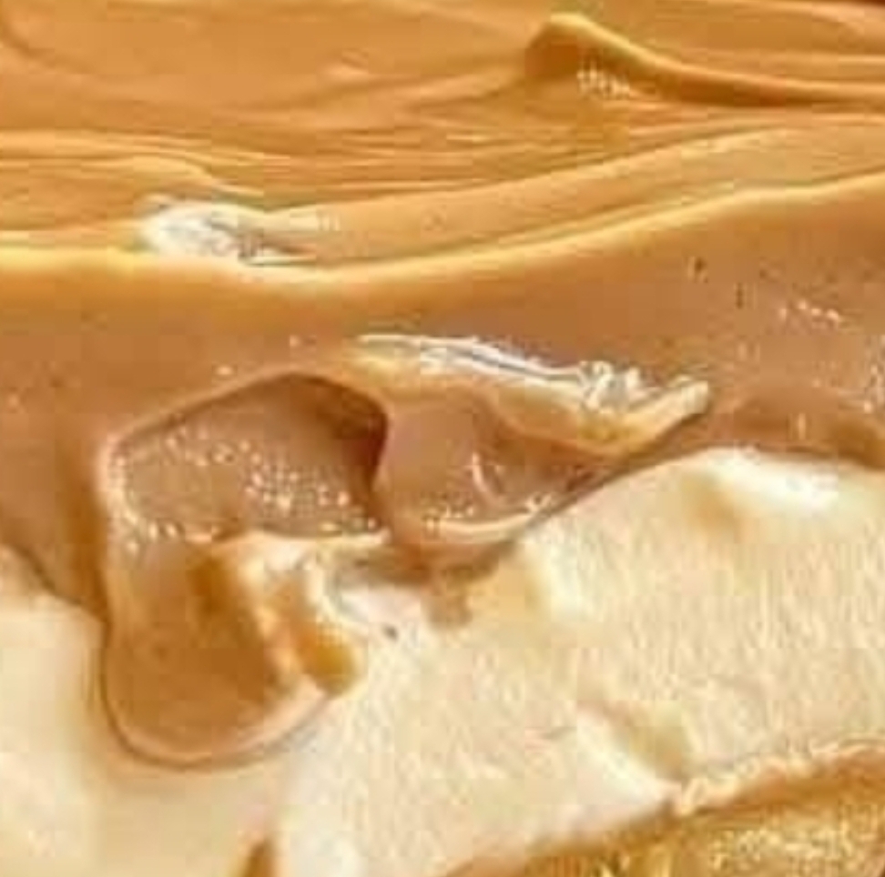 Once the custard layer is firm, pour the caramel sauce over the top. Use a spoon or spatula to spread it evenly, ensuring it covers the entire surface.