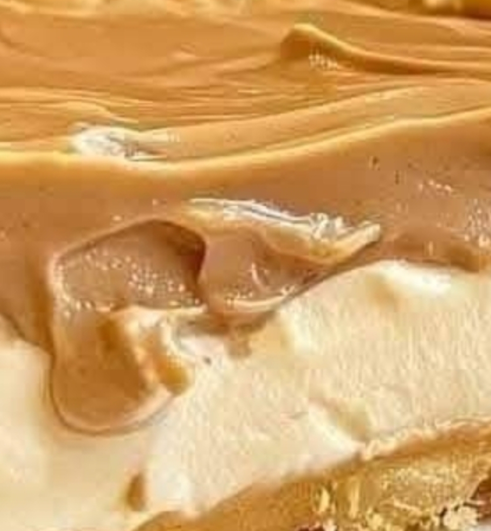 Once the custard layer is firm, pour the caramel sauce over the top. Use a spoon or spatula to spread it evenly, ensuring it covers the entire surface.