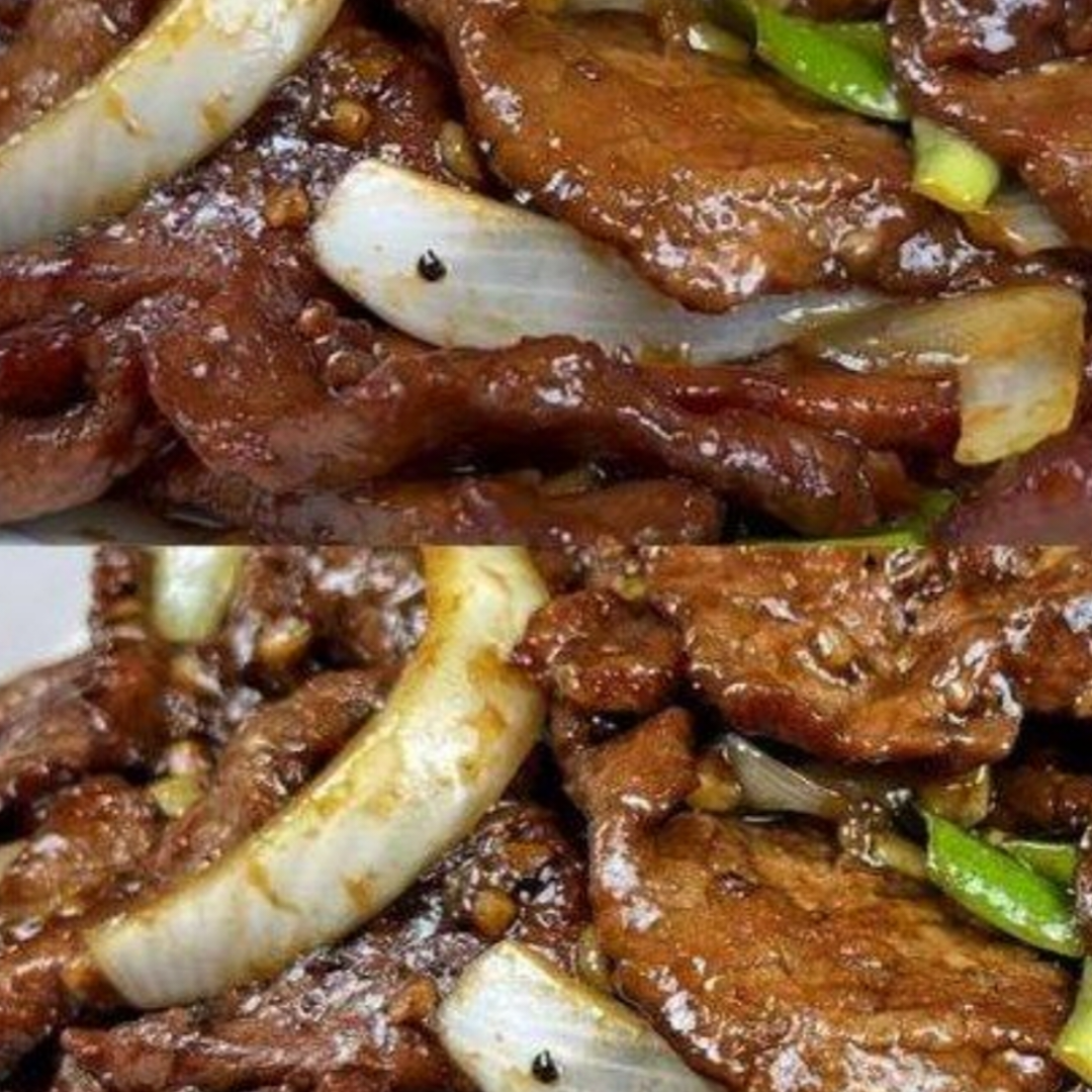 Seasoning and serving:Season to taste with 1/2 teaspoon salt and sugar. Give one last round to match.Serve the beef and onion hot, preferably alongside steamed rice or stir-fry.