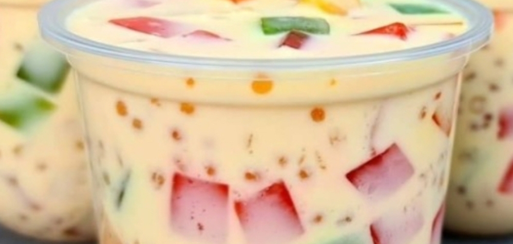 This vibrant drink combines chewy tapioca pearls, fruity jelly, and a refreshing fruit-flavored base, making it perfect for a fun and colorful treat!