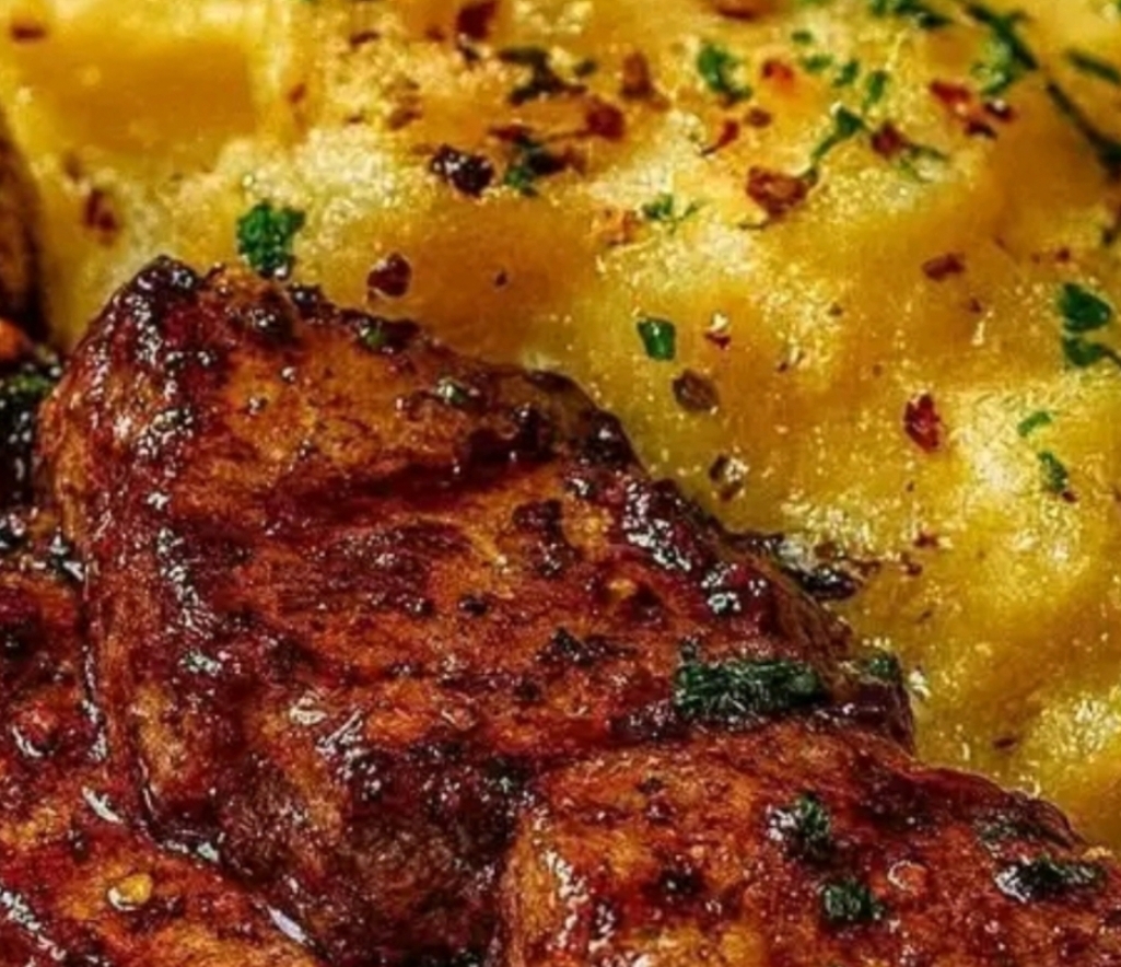 This recipe combines two classic, complementary dishes: pan-seared steak bites and oven-roasted smashed potatoes. The steak is cooked in a rich garlic butter sauce, while the potatoes are crispy on the outside, fluffy on the inside, and topped with melted cheese. It is a single-meal preparation that requires coordination between stovetop and oven components.