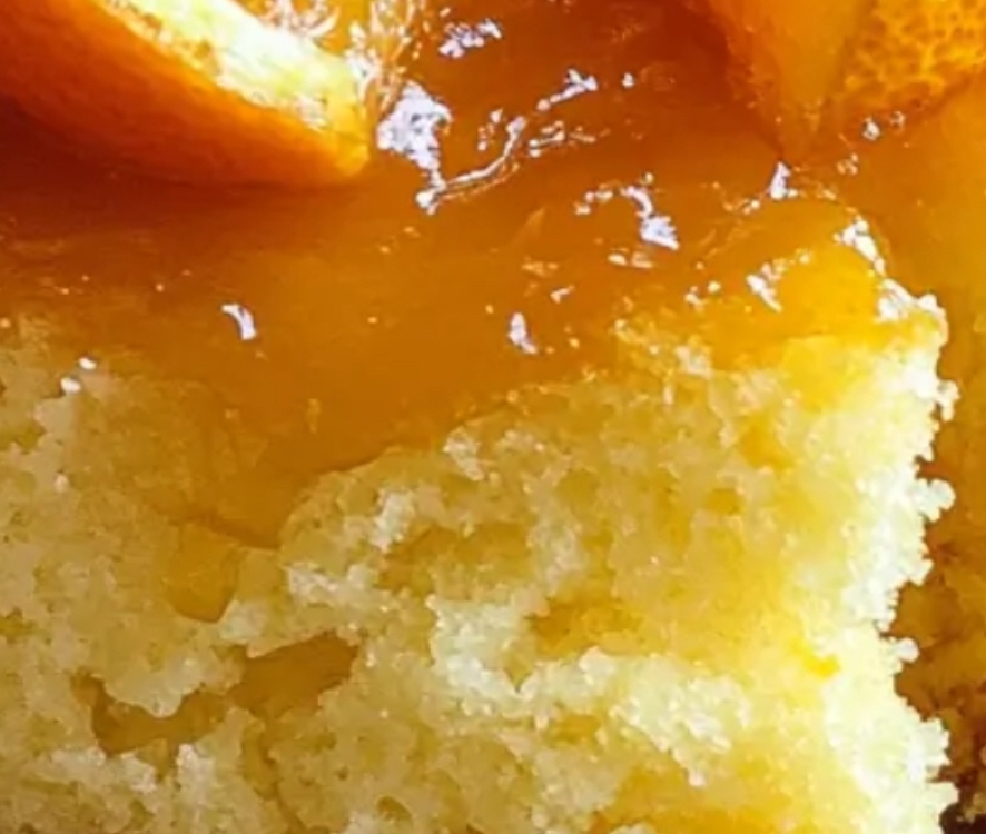 - Once the cake is out of the oven, immediately pour the cooled syrup evenly over the hot cake.