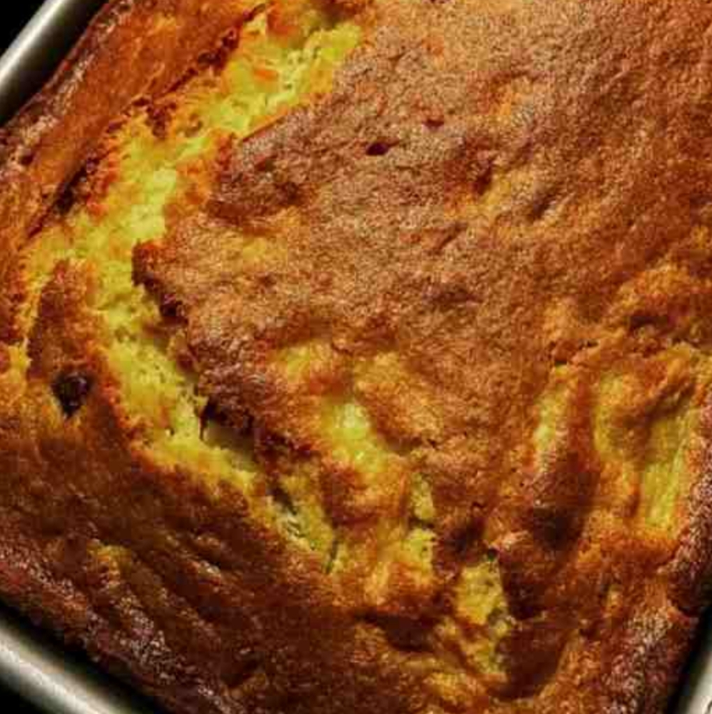6. Pour mixture into a greased loaf pan (9×5). Bake for 60 minutes or until a toothpick inserted comes out clean.