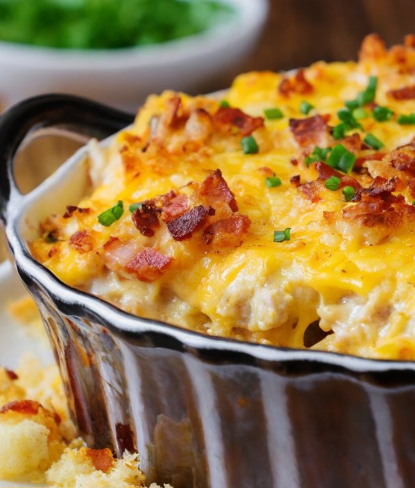 Ingredients: 2 cups cooked and shredded chicken 1 cup cooked and crumbled bacon 16 ounces frozen shredded hash browns 16…