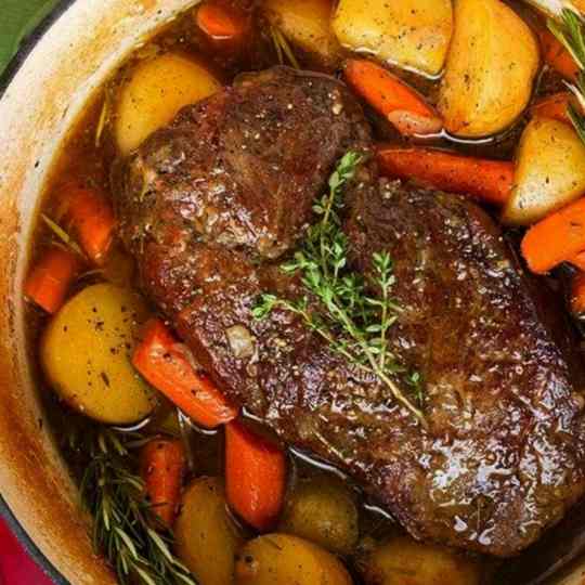 °one 3- to 5-pound chuck roast (such as a beef blade roast)