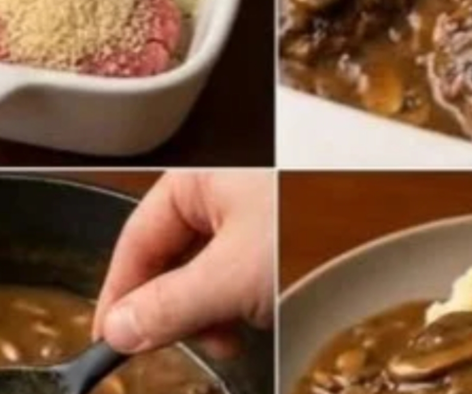 In the same skillet, add butter or oil. Add sliced onions and cook over medium heat for 8–10 minutes, stirring occasionally, until soft and lightly caramelized. - Make the Gravy
