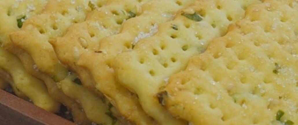 Here is a simple and delicious recipe for the crispy savory garlic–parsley crackers shown in the image!