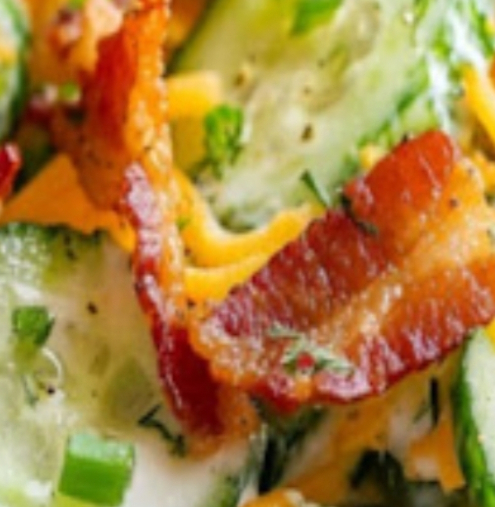 It’s like ranch dressing, cucumber slices, and everything bagel seasoning had a baby… then threw in some cheddar cheese and crispy bacon for good measure.