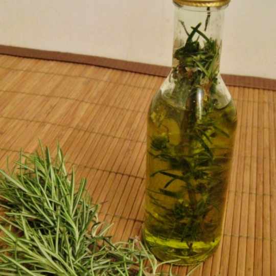 • Place the rosemary in a jar and pour olive oil over it until the sprigs are fully submerged.