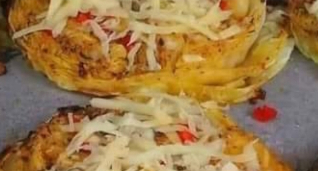 This recipe is for a plant-based casserole dish featuring cabbage as the primary ingredient. It is baked with a dairy-free creamy sauce and a vegan cheese topping. The dish is a vegan interpretation of baked cabbage gratins, utilizing common plant-based substitutes for dairy components.