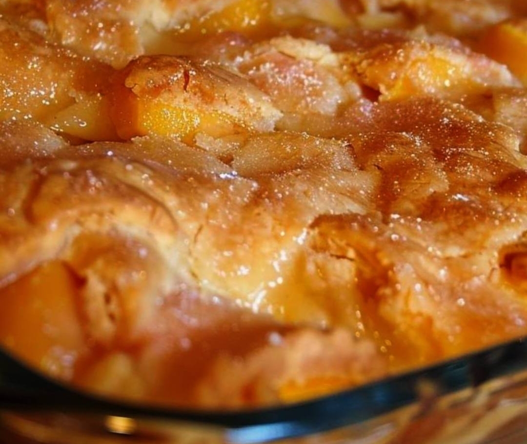 vintage oven-baked peach cobbler